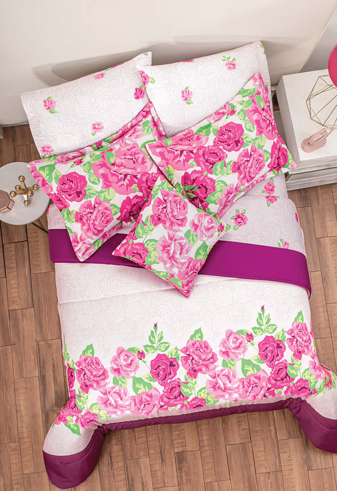 • Queen incluye: • 1 Edredon| • 2 Fundas Decorativas| • 1 Cojin Decorativos | • Juego de Sabanas