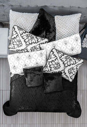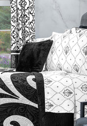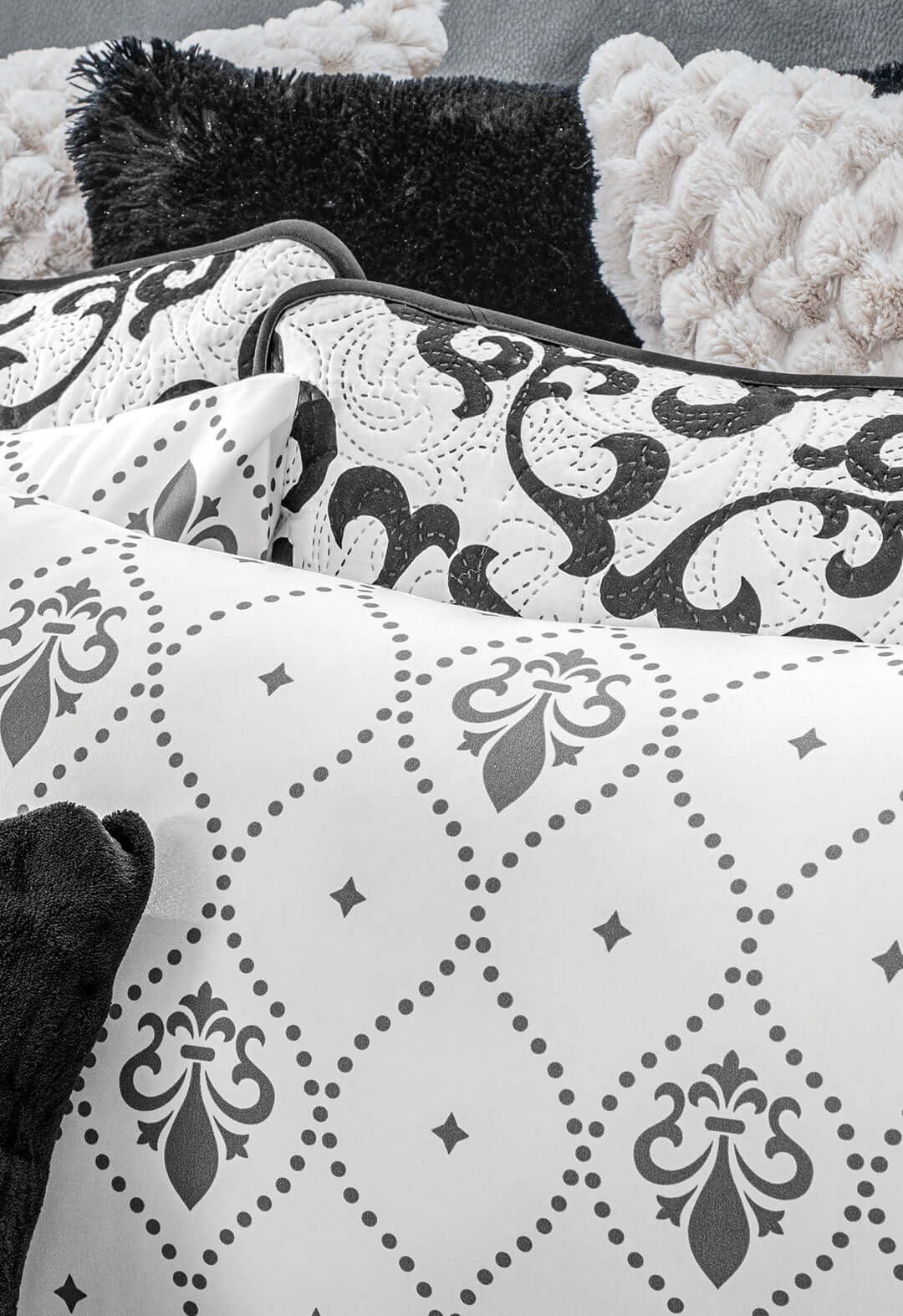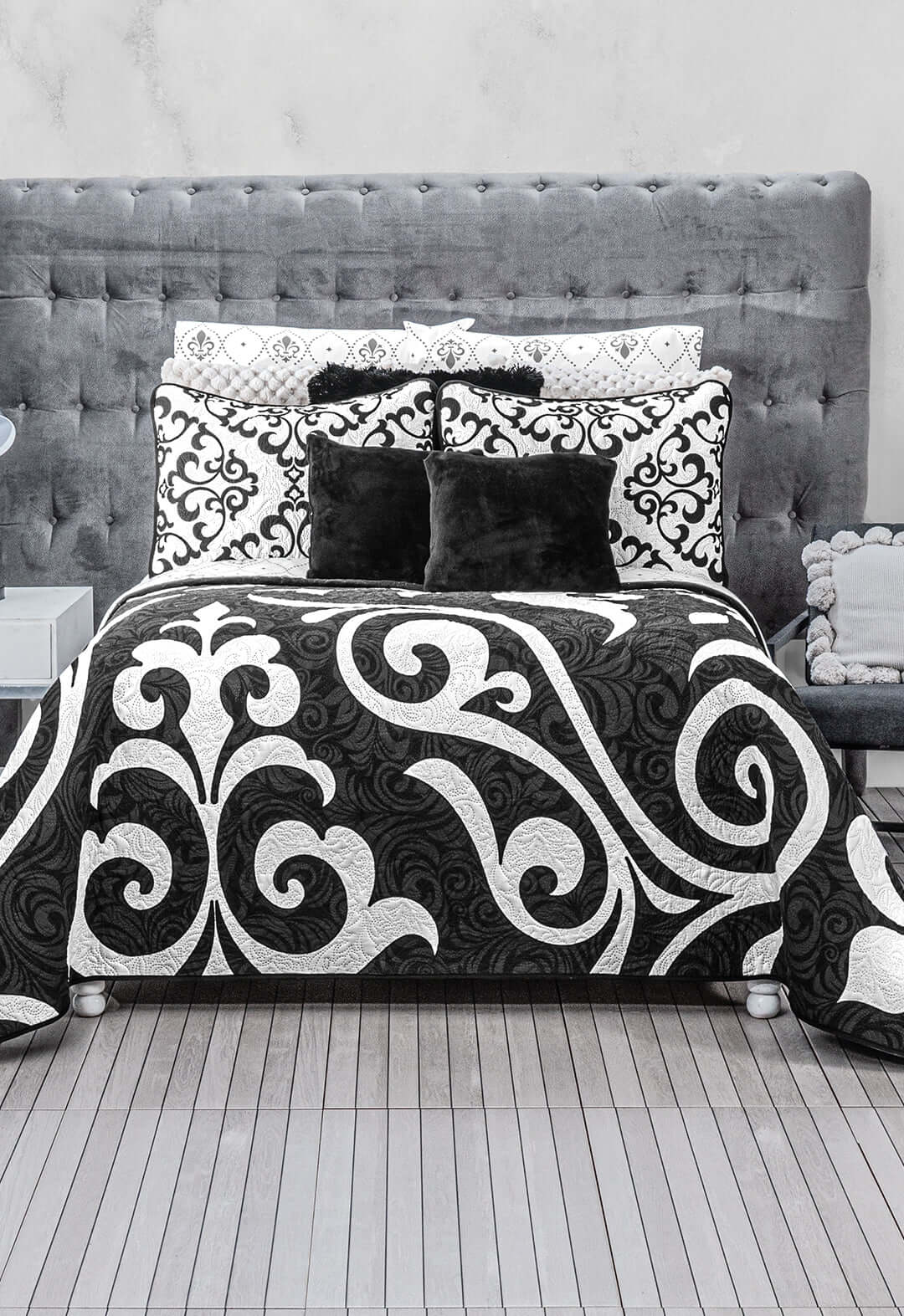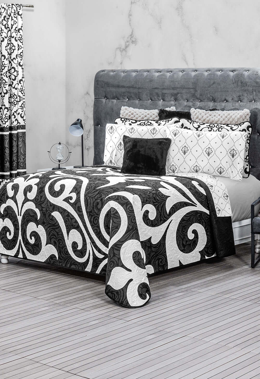 Juego reversible en blanco y negro, con diseño sobrio e impactante. Incluye un juego de sábanas que se adapta a distintos estilos y aporta equilibrio al espacio.