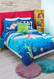 El coordinado de edredón Shark es un set reversible que incluye sábanas, fundas decorativas y cojín. Con un diseño inspirado en el océano, añade un aire divertido y dinámico a cualquier habitación.