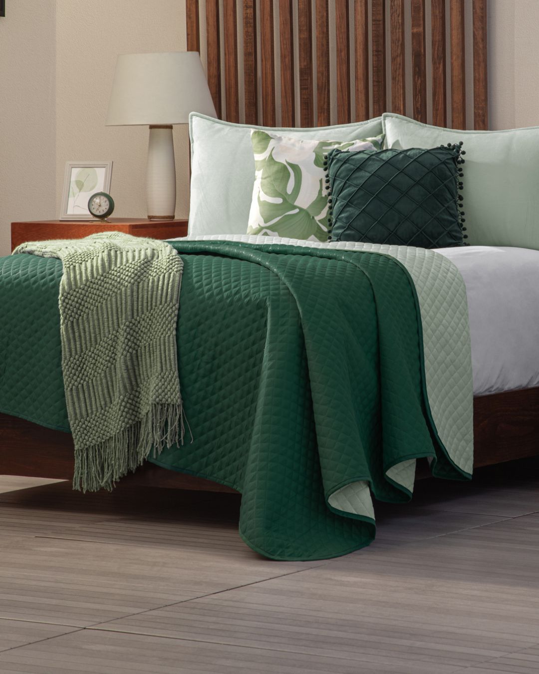 Sus tonos evocan paisajes abiertos y llenan la cama de frescura y serenidad. Ideal para quienes buscan un ambiente natural y actual. Al ser reversible, disfrutas dos estilos en una sola pieza.